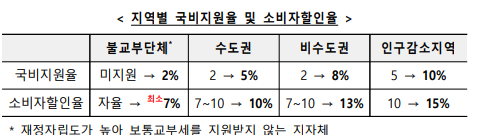 ** 농어촌 인구소멸지역(84개 시·군, 411만명)은 1인당 2만원 추가 지원