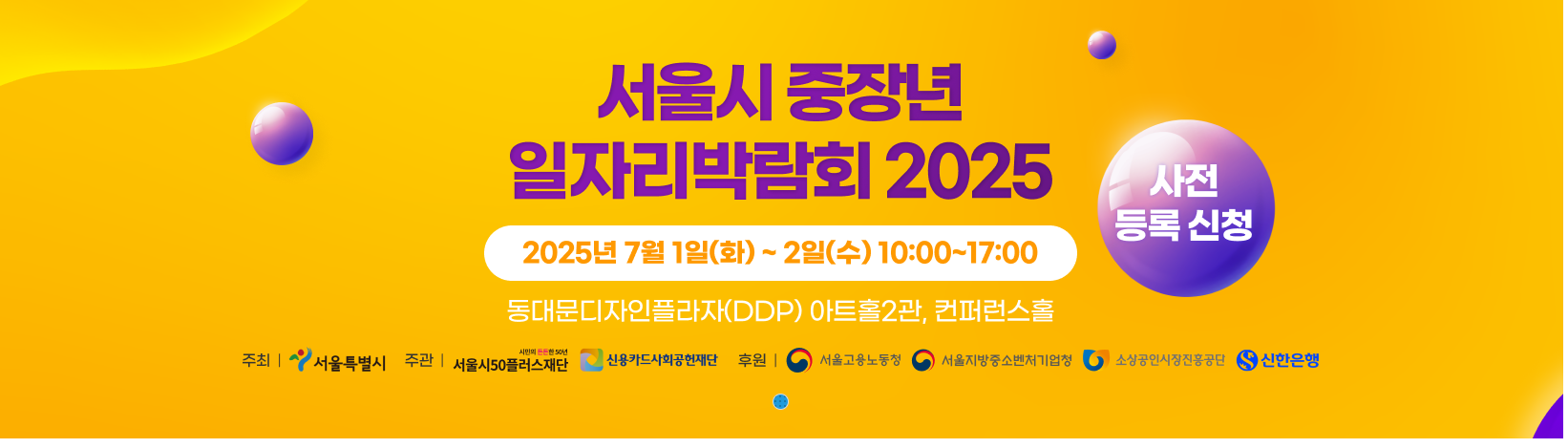서울시 중장년 일자리 박람회 참가를 원하시는 분들은 2025년 6월 9일부터 서울시 50플러스포털을 통해 온라인으로 사전 신청할 수 있다.